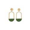 Dangling elegantly is a 2" pendant made from 18K gold-plated stainless steel and handcrafted semi-circular khaki green polymer clay.