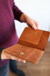 Passport wallet measures approx. 5 inches wide and 6 inches tall