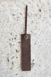 Bookmark measures approximately: 1.5 inch wide and 6 inches long, with a .25x5 inch leather tie and brass hardware