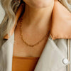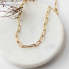 A classy gold plated paperclip link chain necklace perfect for layering or adding a simple touch of beauty to your look. High quality, 18k gold plated chain that is tarnish resistant and ethically made by survivors of human trafficking.