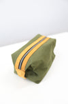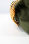 Materials: leather, olive green canvas, kikoi lining, metal zipper