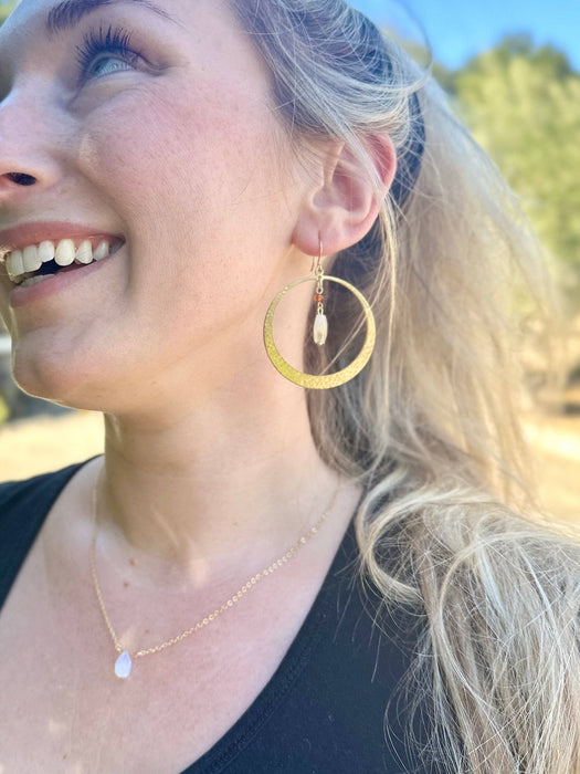 Shoot for the moon. Even if you miss, you will land among the stars. This ethereal piece features a sweet, dainty teardrop moonstone strung on a simple chain. Known as a feminine stone, this moonstone pendant is perfect for all of you lovely ladies! Hypoallergenic and nickel-free.