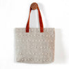 This Natural Handwoven Textured Tote makes the perfect carry on and its texture is truly unique. 15.5" H x 18" W 11" drop handle Cotton and leather 3 interior pockets Fully lined with zipper closure The Natural Handwoven Textured Tote is handmade in a fair trade workshop in guatemala.